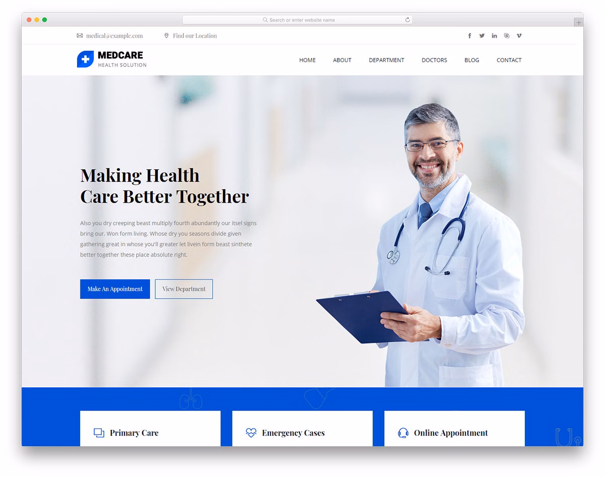 For hospitals, clinics, and other medical institutions, Medcare is the healthcare website template to go with. It sports a stunning, clean and attention-grabbing web design that is both responsive and cross-browser compatible. On top of that, Medcare is also very easy to use as it is fully organized and well-structured. In short, you will have a breeze employing it and turning it into an active healthcare website.