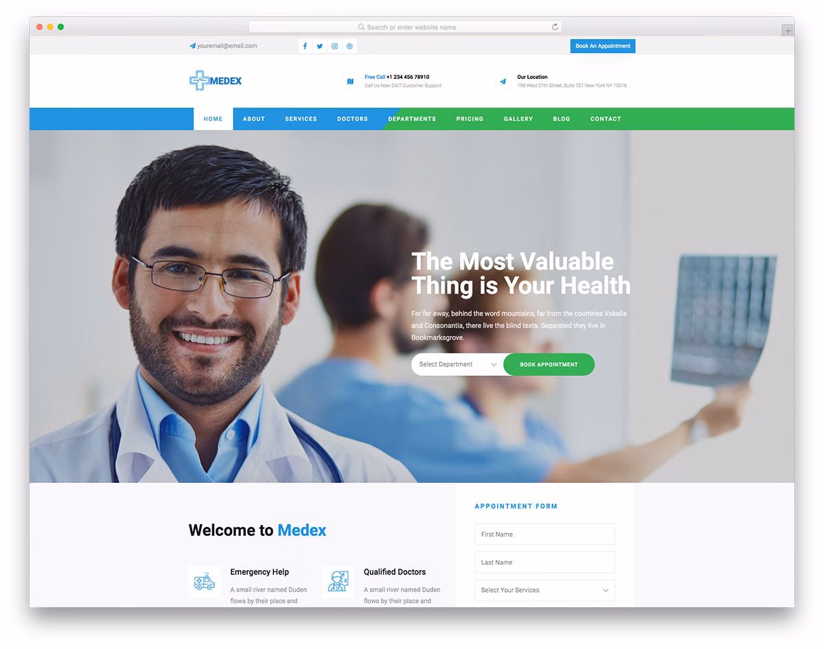 Starting building a website from scratch is a thing of the past. Medex is an accessible medical website template that will help you kick off your project swiftly. Employ the powerful, practical, and professional Medex and make an immediate difference. With all the modern features and functions, your outcome will deliver a great experience and help you raise your potential. Promote your services in the best possible light and let patients learn more about you only by viewing your website.