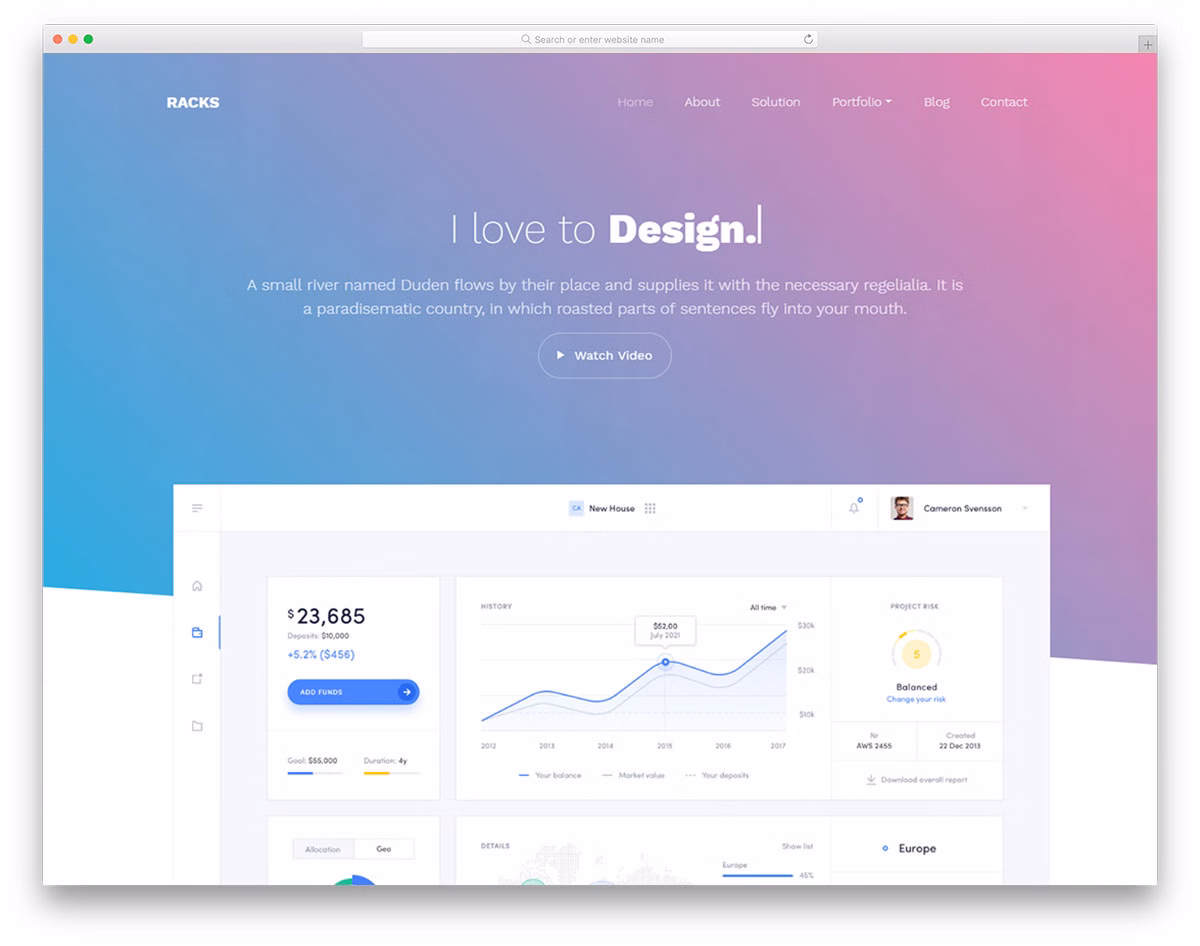 Loads of first-class goodies await every user of this high-end website template for software companies. For your information, even if you are a freelancer who needs to sort out their online presence, Racks could be an excellent option for you, too. Look no further and start investigating this remarkable tool before you fully commit.