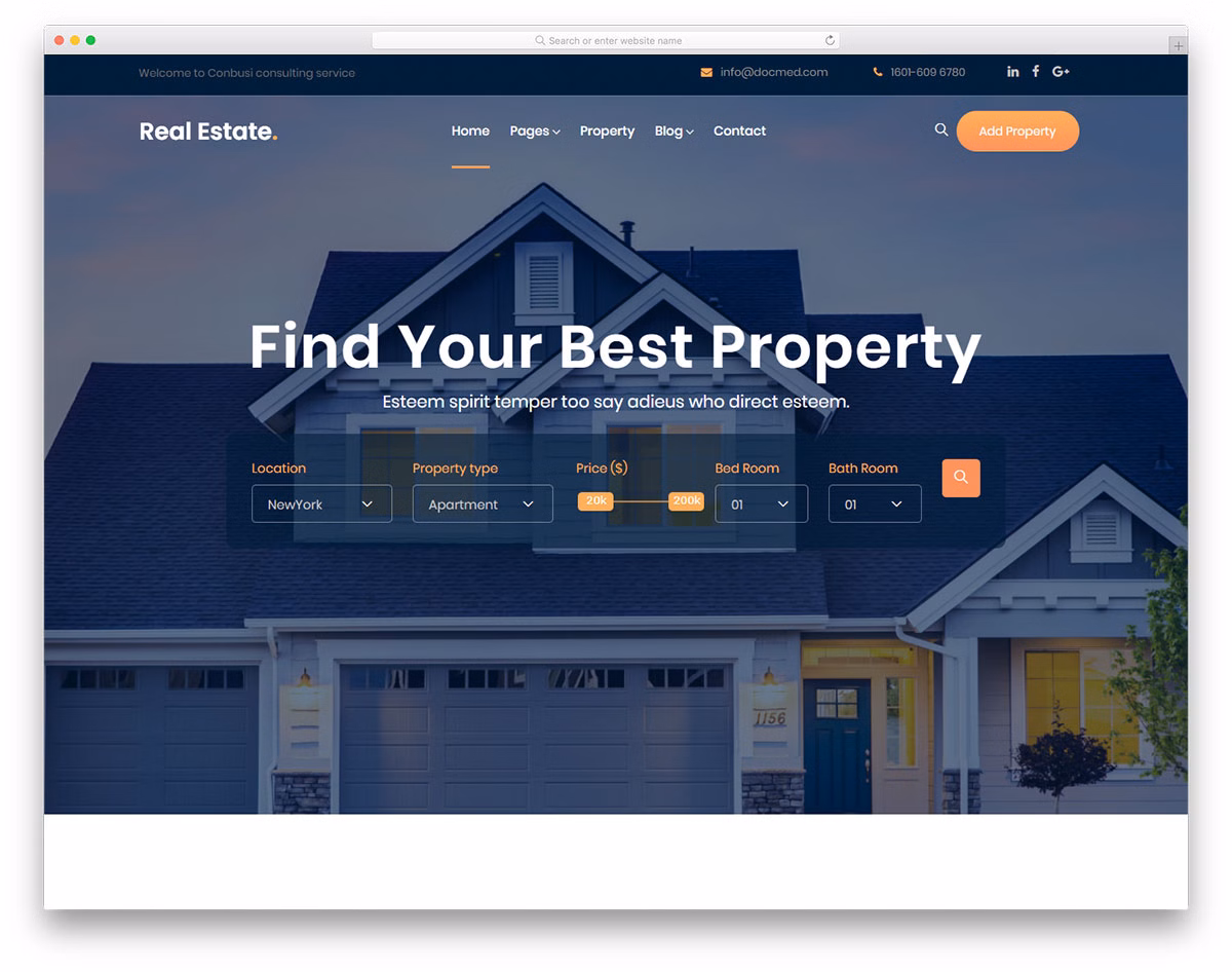 More goodness contains sticky navigation, drop-down menu, hover effect, accordions, and testimonials slider. You will also find a contact page with a working form and Google Maps. And to top it all up, you can start a real estate investment blog, too, and strategically introduce content marketing.