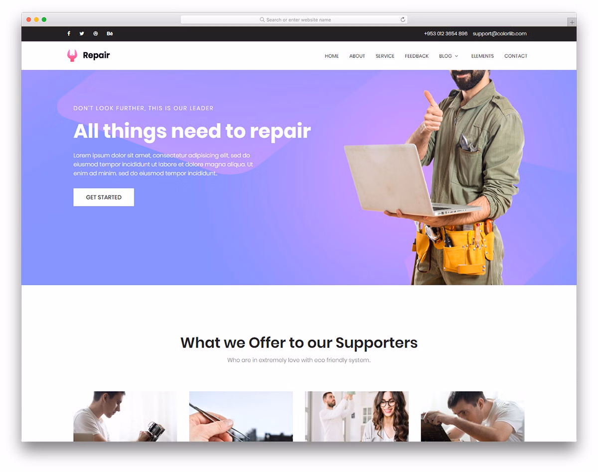 While you keep on solving your clients’ issues, let Repair be in charge of your online appearance. The template is customizable, responsive, and retina-ready. It gives you the freedom you need to shine online and show your clients exactly what they need to see. They will rush to the contact page and use the active form, Repair has integrated, straight away.