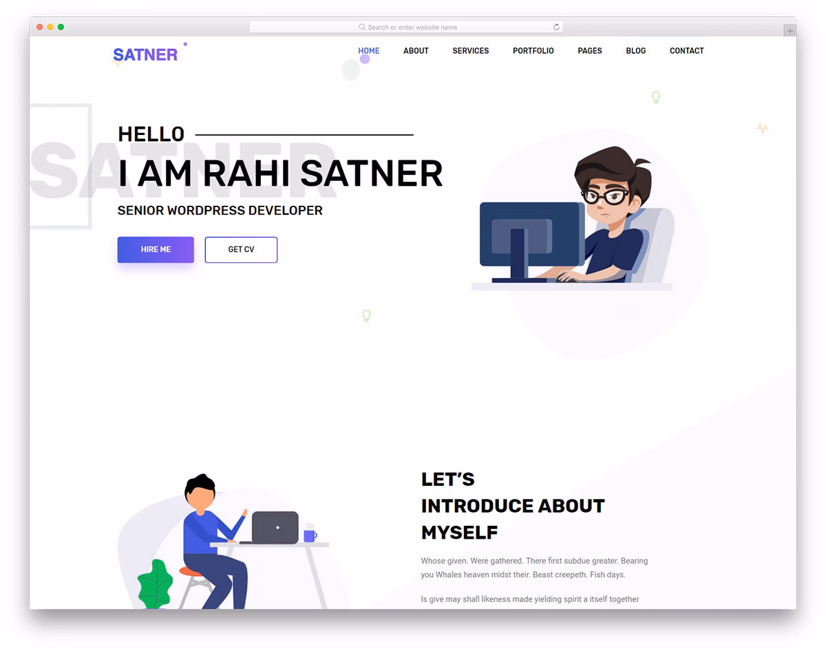 Satner is a spectacular and modern web developer website template for creating outstanding portfolios. Satner is fully customizable and highly adaptable, perfect to present yourself on the web professionally from the start. You can effortlessly use Satner for all sorts of professional services you offer. Besides, you can easily alter it to your needs and regulations, too. With the ready-to-use Satner, you can impress and amaze all potential clients, but take it to another degree by implementing your personal creative touch into it.