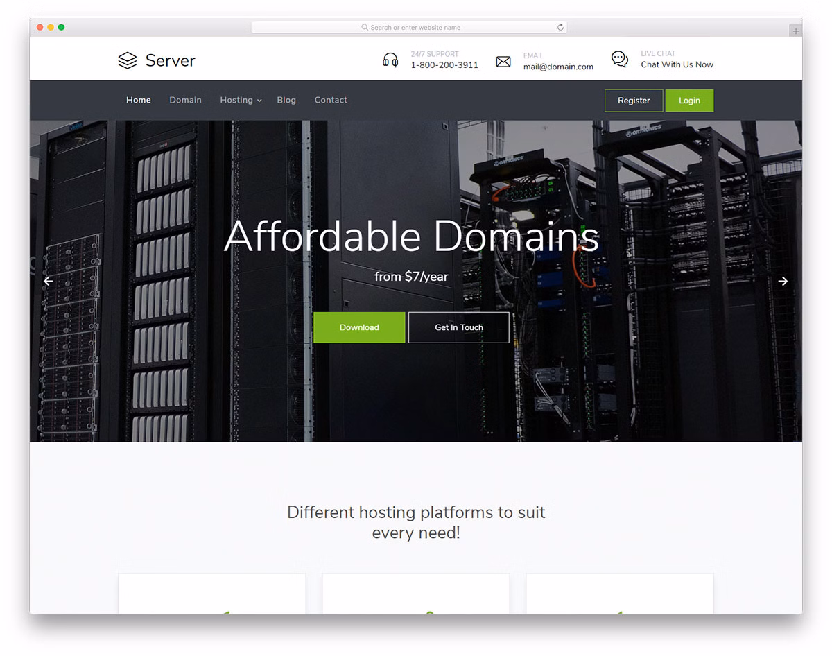 With Server HTML hosting website template, you can have your online presence up quicker than you think. The canvas is here, fully packed with features for you to employ it, however you see it fit your web hosting service best. On top of that, Server is also mobile-ready and responsive to work seamlessly on all devices, smartphone, tablet and desktop. Besides, Server also acclimatizes to the majority of web browsers instantly.