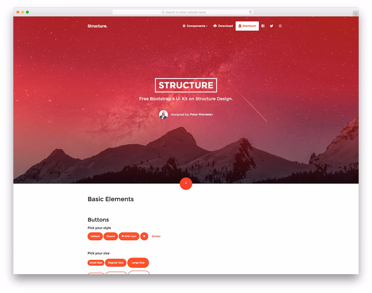 Structure rocks the game with tons of goodies that will do you well. From buttons, checkboxes and sliders to badges, paginations and forms, you get it all and a horde more. Keep in mind, each detail also comes in several different styles for your convenience.