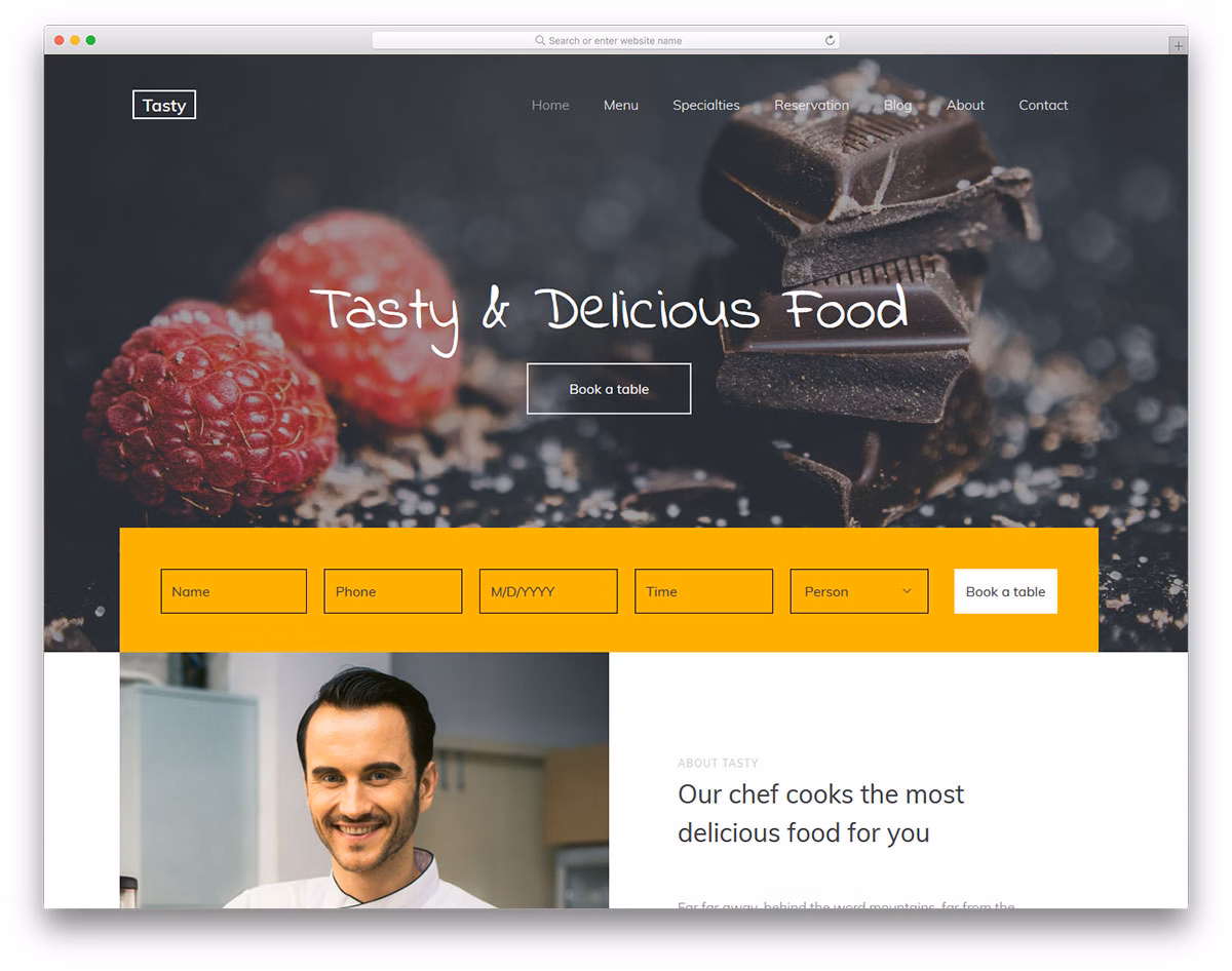 Massive slider, booking form, on scroll content reveal, nifty and categorized food menu and parallax effect, these are just a few of the features and assets Tasty rocks the web design world with. Make it your own, enrich it with your personal touch and let it follow your branding to reach the best results.
