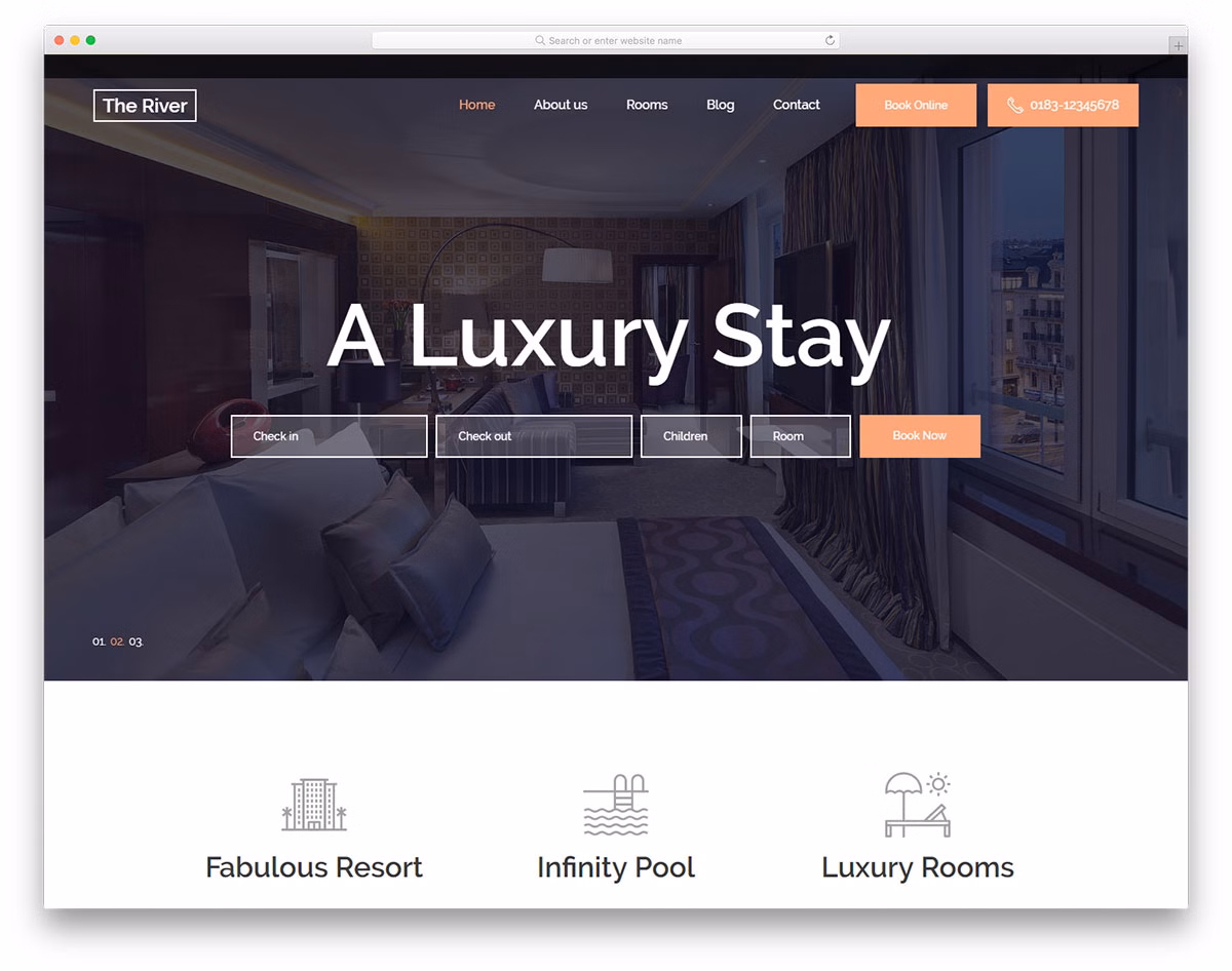 If you are in the accommodation business, you will enjoy our excellent free mobile-ready hotel website template, TheRiver. It is a stunning, professional and beginner-friendly website canvas for hotels, resorts and other accommodation businesses that are in need of a solid page. Do yourself a favor and enjoy TheRiver’s live preview page and study its perks further.