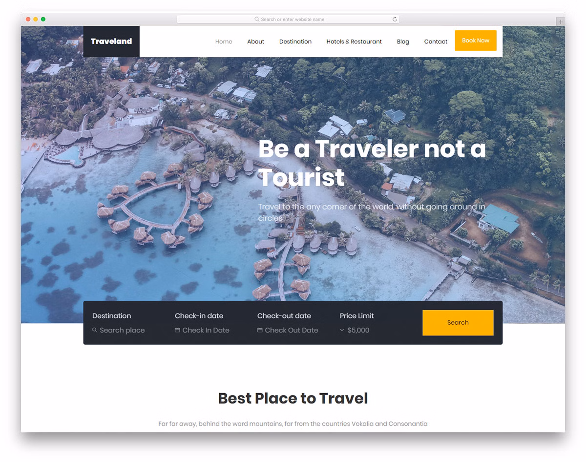 Indeed, Traveland is a free travel booking website template for travel agencies and other tourism businesses. You have a chance to employ the powerful and wonderful Traveland web design right away and have it represent your company online in the best possible light. While it caters to many ideas out of the box, you can still improve and enhance Traveland according to your needs and regulations. No need to keep yourself limited while hammering out the best and most impressive travel page with Traveland.