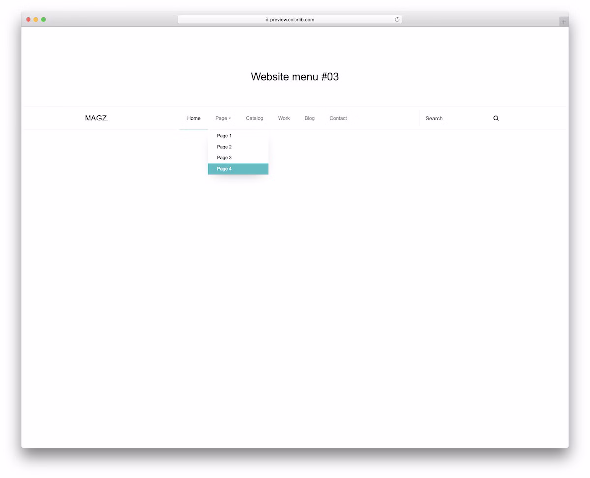 Template Details Author: Colorlib Released: 2025 License: CC BY 3.0 Description If you like to stick to simplicity when it comes to web design, this free minimal navigation bar template will do the trick. The menu also features a dropdown and a search bar. Download Preview