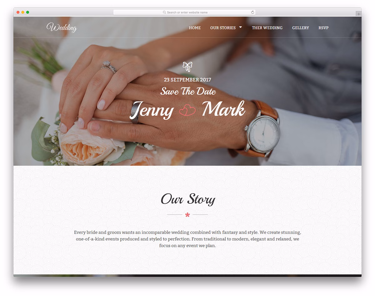 Wedding2 is a pretty, lovely and attention-grabbing website template with great attention to detail and a strong first impression. Included is also a newsletter subscription, social media icons and a clean RSVP. In short, there is all and everything you need to build a modern and elegant responsive wedding website. Wedding2 makes sure you are stacked with the must-have features and feel comfortable developing a fresh new page.