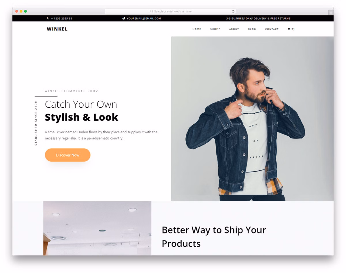 Winkel is a modern, trendy, elegant and professional free online fashion store website template. It rocks an intriguing split-screen slider with image, text and call-to-action button. Moreover, Winkel guarantees that your final product will deliver a killer performance for both mobile and desktop users. Also, Winkel works seamlessly on web browsers and retina screens. Regardless of the device and platform, the shopping experience will always be first-grade with Winkel.