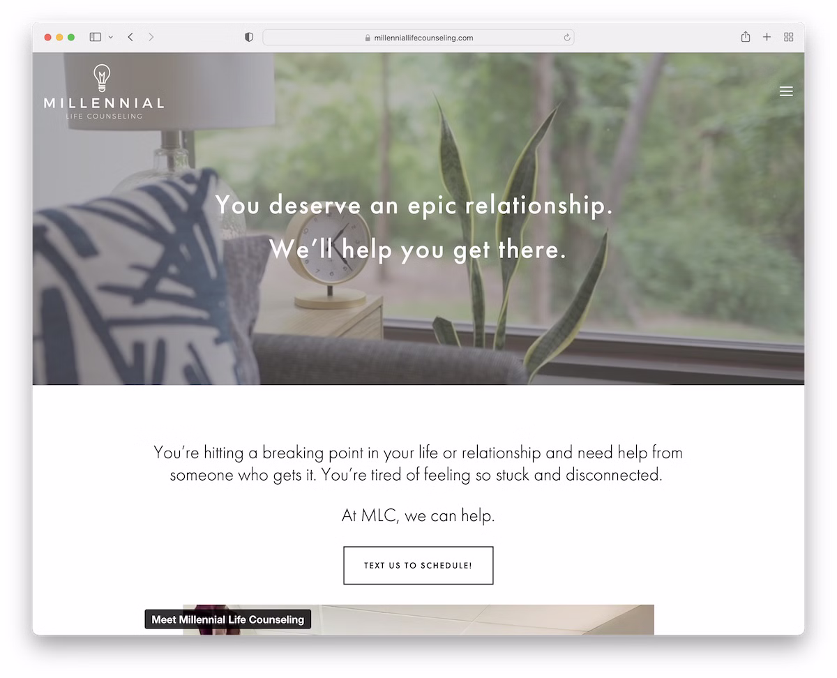 Millennial Life Counseling triggers everyone’s interest via the hero video we haven’t seen many use while creating this best therapist website collection.