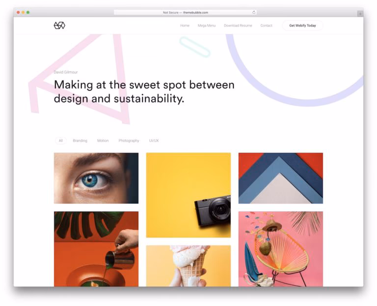 Webify is a three-column WordPress theme with a demo that is best for online portfolios and resumes.
