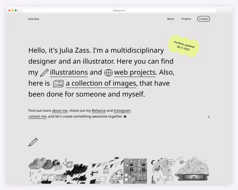 Julia Zass’s Tilda website is modern and creative, with just the right amount of animation to spice things up.