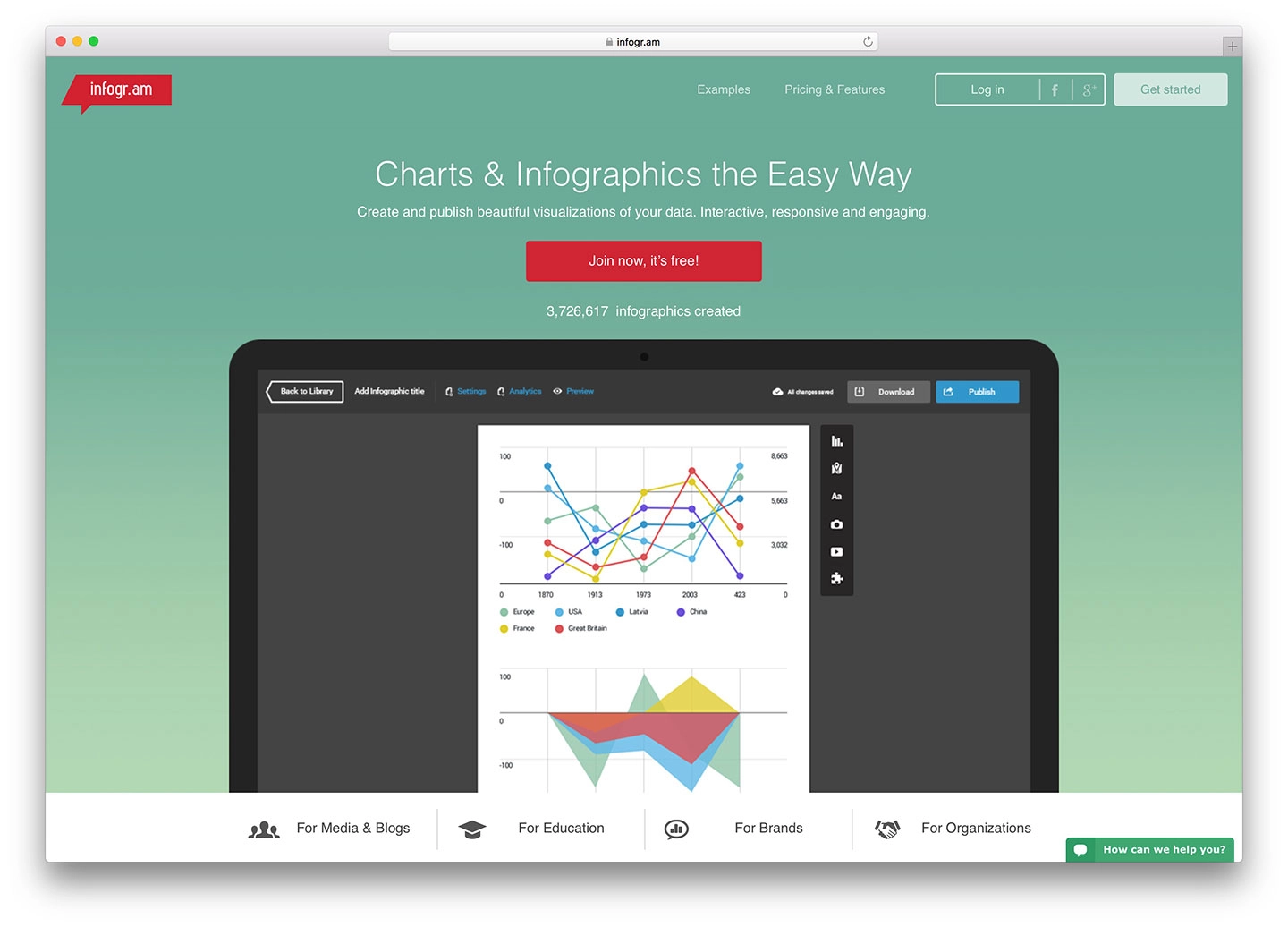 Infogram has helped thousands of content creators create nearly 4,000,000 unique infographics and charts, which will be very difficult to compete with. While a free infographics tool offers a subscription model that provides more flexibility over how you can manage your infographics, the removal of copyright protection, and a huge increase in the number of resources you get to manage your infographics with. Leading bloggers and media sites rely on Infogram to create and produce the kind of infographics that will naturally attract readers and, ultimately media exposure.