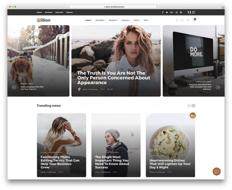 Gillion is a blog and magazine specialized WordPress theme. It comes with many demos that you can install with one click. It has an amazing admin interface to make set up easier.