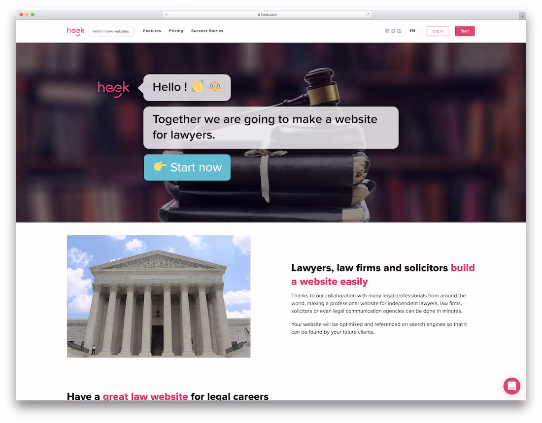 With a name like that, you know you will do things in a way that will set you apart from the competition. Even if you are in the law business, Strikingly is still an undemanding page editor that fluently alters your wants. With very little time and effort invested, you can rock the World Wide Web with a banging and contemporary page. Strikingly also includes domain names, web hosting, security, analytics, and other practical features ensuring safe and stable operation.