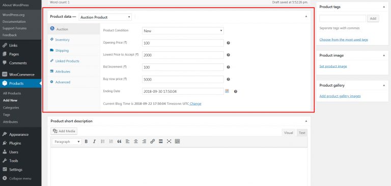 From the admin page, you can specify the starting price of the bid, indicate if the price increases, and put the “Buy It Now” with the price next to it. You can do different styles to entice different buyers to your WooCommerce Store.