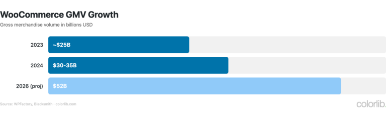 | Estimated annual GMV | $30-35 billion | WooCommerce / Industry estimates |
