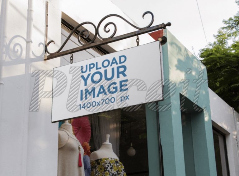 When you are setting up a sign for a vintage boutique, wood, in this case, would work really well. That said, here is an easily editable mockup that you can alter according to your style. While there might be no wood option that you can choose as a background color of the sign, you can add a design that covers that part. As for the design, this mockup offers such that is of 1400 x 700 px dimension, but you can even use different sizing. On Placeit, after you upload your design, you can also crop and reposition it. Without really needing to undergo any challenging tasks, you can now create a life-like demonstration of a wood sign for a brick and mortar.