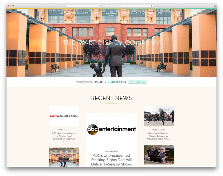 Mickey Mouse, the mascot of the Fortune 500 company, has made his home with WordPress. Meanwhile, WordPress.org has proudly included The Walt Disney Company in its showcase. The website has loads of corporate information on many of its pages.