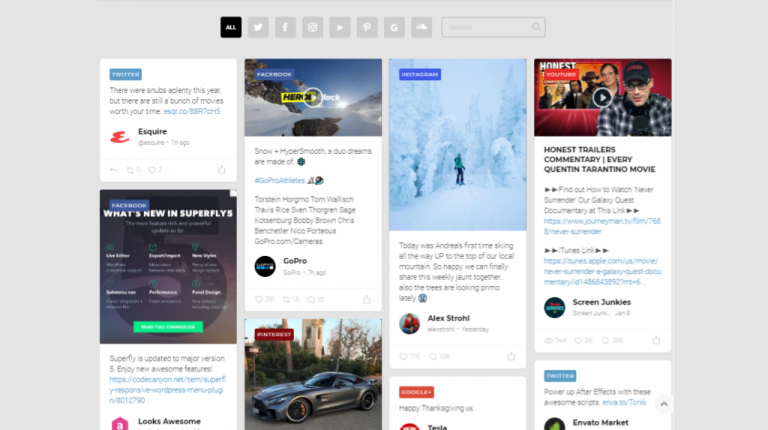 Developers designed Flow-Flow in a way that it can display social media posts and videos from many sources. You can add 3 Facebook feeds and 2 live stream videos, 8 Twitter feeds, and 3 Instagram videos all on the same page. The plugin works best with Facebook, Twitter, Instagram, and Pinterest. Your site’s users can view multiple feeds without opening another page. Enjoy this free plugin that is now optimized for any screen size.