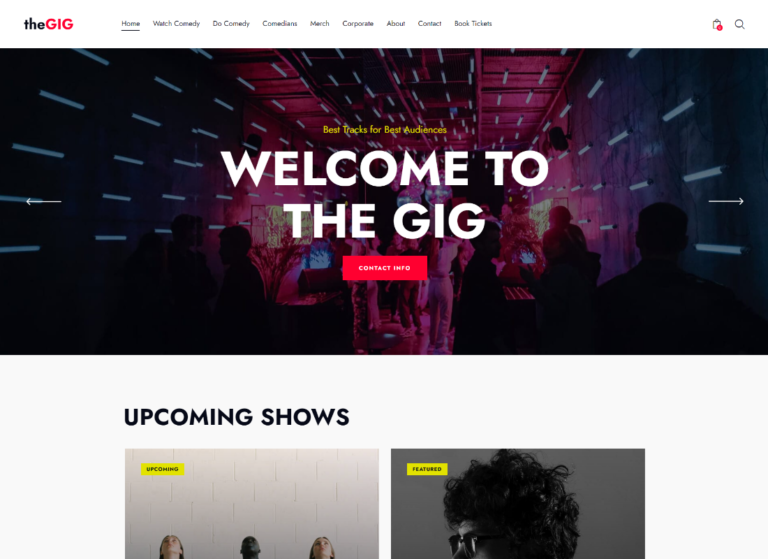 The Gig is a clean, modern WP template that opens today’s list. Regardless of the screen size, it looks vibrant and bright on any mobile device. Ideally, it works for comedy clubs, nightclubs, concerts, or musician websites. Whatever is your entertainment niche, The Gig does its job right.