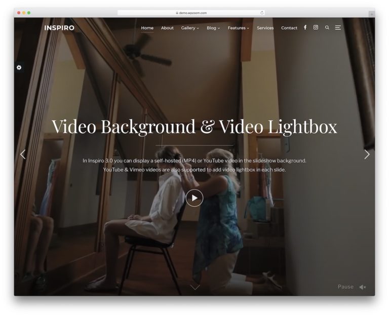 Inspiro is the most prominent WordPress theme with a video background that you can utilize for various intentions. It is packed with MULTIPLE demos and MANY additional layouts and elements that will get you going in close to no time.